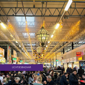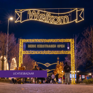 De Bazaar is feestelijk verlicht. We hebben 2,5 kilometer ofwel tienduizenden lampjes opgehangen om de lantarenpalen, bomen en kerstbomen. Boven de Boulevard en op de gevels hangen guirlandes en in de Passage hangen grote kroonluchters. In de hallen hangen honderden grote kerststerren.